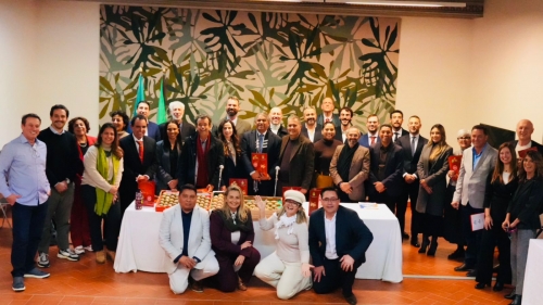 Ainda ao longo do dia, a comitiva participou de um encontro com o embaixador do Brasil na Itália, Renato Mosca de Souza, que apresentou um panorama das relações bilaterais entre Brasil e Itália, com ênfase no comércio e na cooperação econômica. A Itália figura entre as principais economias da Europa e mantém uma relação comercial expressiva e diversificada com o Brasil, envolvendo tanto produtos industriais quanto agrícolas. O embaixador destacou o papel complementar das economias dos dois países, a relevância das exportações brasileiras do agronegócio para o mercado italiano e a importância do cooperativismo italiano, reconhecido internacionalmente pela eficiência na organização das cadeias produtivas, na agregação de valor e na inserção em mercados internacionais. Também foram abordadas as perspectivas de ampliação das parcerias econômicas, tecnológicas e institucionais entre Brasil e Itália.