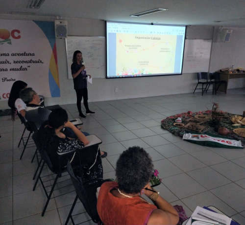 A educadora do Paraná, Angélica Servegnini, representou a Secretaria de Mulheres em atividades em Brasília. Participou do curso final de “Bioeconomia, SUS, Plantas Medicinais e Agricultura Familiar Agroecológica: conjuntura, desafios e perspectivas”, promovido pela Fiocruz Brasília, por meio do Colaboratório de Ciência, Tecnologia, Inovação e Sociedade (CTIS) e a Contag, momento que apresentou experiência de cooperativa do Sudoeste do Paraná.
