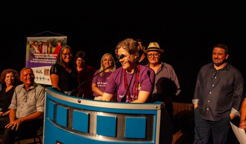 Irma Bruneto, representante dos Movimentos Sociais e uma das beneficiárias, assentada da reforma agrária, expressou gratidão pelo apoio oferecido pelo programa e falou em nome dos movimentos sociais, destacando o impacto positivo dos quintais produtivos para as mulheres que, como ela, agora possuem novas possibilidades de produção e renda.