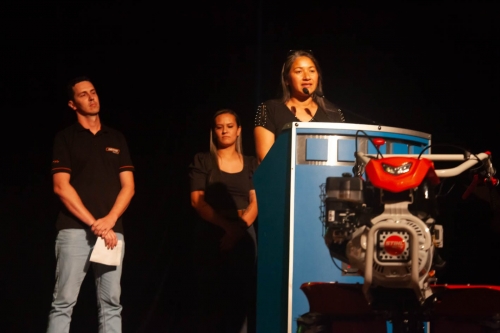Ao fim dos discursos, as agricultoras e contempladas Marlene Aparecida Ribeiro Fuck e Ana Aparecida Martins Stolarczk, do município de Major Gercino, foram convidadas para assinarem o termo de recebimento dos equipamentos do projeto, que inclui um moto cultivador fornecido pela empresa Serra Máquinas.