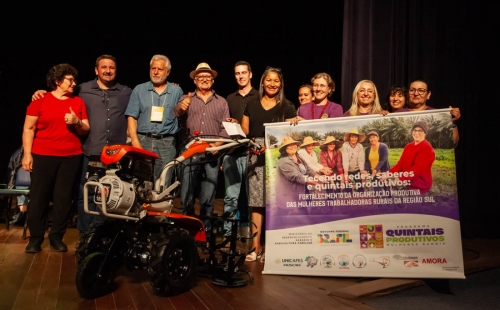 Foi realizado no dia 07 de novembro, em Florianópolis (SC), o Ato de Entrega dos Kits do Projeto Tecendo redes, saberes e quintais produtivos: fortalecimento da organização produtiva das mulheres trabalhadoras rurais da Região Sul, firmado entre o Ministério do Desenvolvimento Agrário e Agricultura Familiar e a Unicafes Brasil.