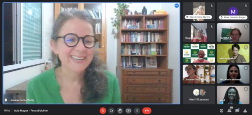 A professora Josiane Carine Wedding, mestre, doutora e pós-doutora e professora de Sociologia do Departamento de Ciências Humanas e do Mestrado em Desenvolvimento Regional (PPGDR), da Universidade Tecnológica Federal do Paraná (UTFPR), campus Pato Branco, e também líder do Grupo de Pesquisa: Gênero, Juventude e Cartografias da Diferença (PPGDR/UTFPR), ministrou a aula de abertura do Pecsol Mulher. Na sua fala, abordou conceitos de Gênero, feminismo e cooperativismo, além de fazer uma retrospectiva e contextualização deste cenário.