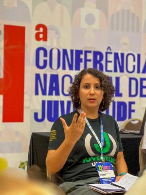 A assessora da Secretaria de Jovens da Unicafes Nacional, Daniela Flores, participou como painelista do Painel Juventude e Economia Solidária, juntamente com o líder escoteiro, Pedro Jesus e a assessora geral da República, Luiza Dulci.