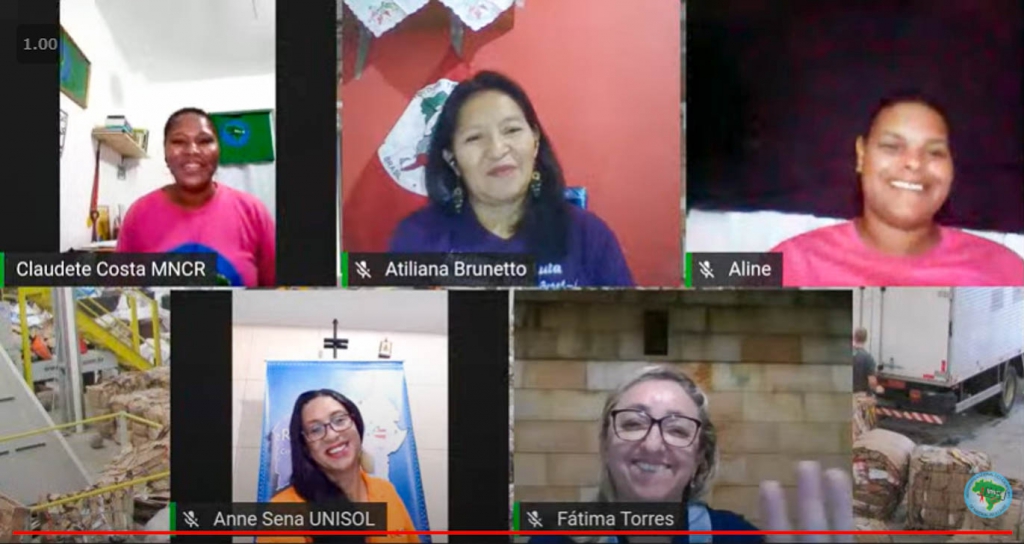 Com o tema ‘Mulheres na resistência construindo a economia solidária’, a live foi conduzida por Claudete Costa, presidenta da Unicatadores, e contou com a participação de Fátima Torres, presidenta da Unicafes do Rio Grande do Norte, Anne Sena, presidenta da Unisol Bahia, Atiliana Vicente Brunetto, representante da Concrab e Aline Sousa da Silva, representante do Movimento Nacional de Catadores de Materiais Recicláveis (MNCR) e secretária-geral da Unicopas. Este foi o primeiro bate-papo de uma série de lives promovidas todas as terças-feiras pelo movimento de catadores e catadoras para estimular o debate em torno da economia solidária.