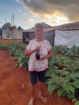 Maria da Penha Macedo, do Mato Grosso do Sul, também foi beneficiada com o projeto e expandirá a produção de sua horta de verduras e hortaliças. Hoje ela participa do Pnae e PAA.