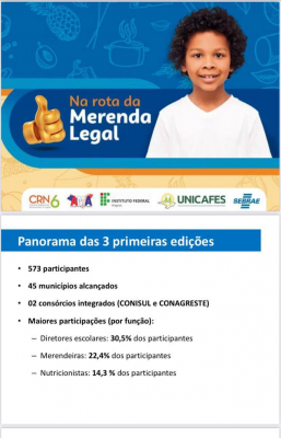O Merenda legal, iniciativa que vem mobilizando o Estado, conta com a parceria do Sebrae Alagoas, da Associação dos Municípios Alagoanos, Conselho Regional de Nutrição da 6ª Região e do Instituto Federal de Alagoas. Atualmente, já foram realizadas três edições do projeto, sendo que o objetivo é ampliar para todo o Estado. A Federação Unicafes Alagoas possui 34 cooperativas e cerca de 10 mil agricultores registrados com possibilidades de atender ainda melhor o Pnae.