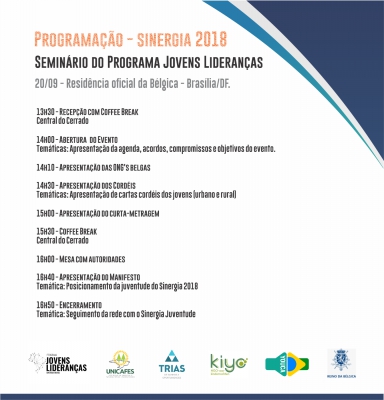 A juventude cooperativista viverá nesta semana um momento importante. Nesta semana, o movimento Sinergia 2018 promoverá o 1º Seminário do Programa Jovens Lideranças. O evento está marcado para dia 20 de setembro, 13h30 às 17h, na Embaixada da Bélgica em Brasília. A proposta é fazer uma grande amostra das diferentes realidades das juventudes da área urbana e do campo, mostrando iniciativas em que os jovens são protagonistas em suas comunidades, bem como manifestar seus direitos e anseios.