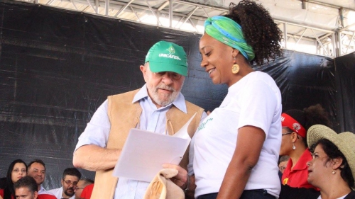 A diretora da Unicafes Bahia, Iara Andrade entregou a pauta do Cooperativismo Solidário para o ex-presidente Lula.
