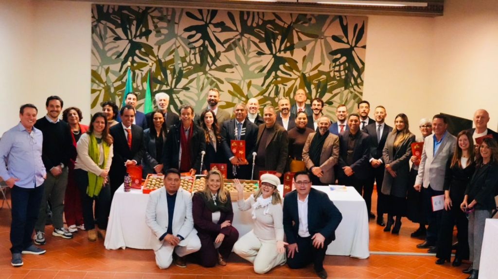Ainda ao longo do dia, a comitiva participou de um encontro com o embaixador do Brasil na Itália, Renato Mosca de Souza, que apresentou um panorama das relações bilaterais entre Brasil e Itália, com ênfase no comércio e na cooperação econômica. A Itália figura entre as principais economias da Europa e mantém uma relação comercial expressiva e diversificada com o Brasil, envolvendo tanto produtos industriais quanto agrícolas. O embaixador destacou o papel complementar das economias dos dois países, a relevância das exportações brasileiras do agronegócio para o mercado italiano e a importância do cooperativismo italiano, reconhecido internacionalmente pela eficiência na organização das cadeias produtivas, na agregação de valor e na inserção em mercados internacionais. Também foram abordadas as perspectivas de ampliação das parcerias econômicas, tecnológicas e institucionais entre Brasil e Itália.